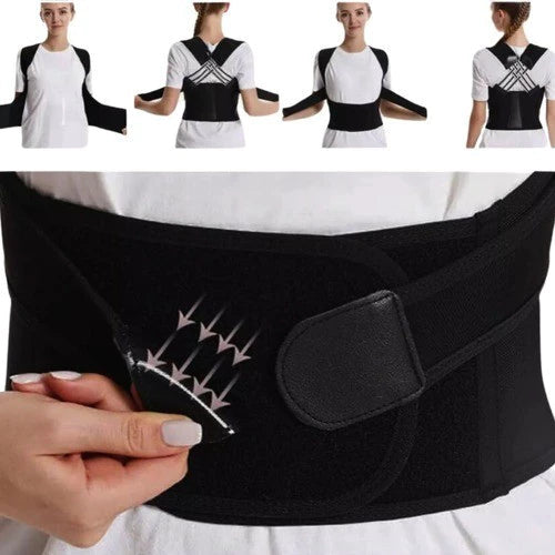 1. Suporte duplo para costas e cintura, postura correta, suporte os músculos das costas e da cintura.